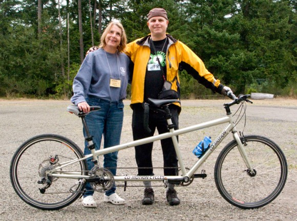 Бывший министр внутренних дел Великобритании Дэвид Бланкетт, слепой от рождения, в своих мемуарах описал интересный случай. Будучи ребенком, он научился быстро и без посторонней помощи ездить на велосипеде. Малыш Дэвид досконально изучал маршрут, запоминал количество оборотов педалей от одного поворота до другого, а затем гнал по дороге на всех парах, надеясь, что не встретит на своем пути случайно зазевавшегося прохожего. Метод Дэвида Бланкетта и сейчас используют многие слепые люди. Однако большинство все-таки прибегает к помощи белой трости. При езде на велосипеде, как и при ходьбе, она выполняет сразу несколько функций: является щупом, буфером при столкновении, генератором звука, подсказывая характер препятствия на пути, а также служит сигналом для пешеходов и водителей. Но, удерживая в одной руке белую трость, а в другой руль велосипеда, большую скорость не разовьешь. Впрочем, не для всех это является целью поездки. Знаменитый слепой тенор Андреа Бочелли частенько ездит на велосипеде по семейным делам в сопровождении друзей, которые размеренно крутят педали параллельно с ним, положив руку на его плечо. Наконец, еще один оригинальный способ катания на одноместном велосипеде придумал незрячий американец Хуан Руиз, благодаря чему попал в Книгу рекордов Гиннеса. Свой метод он позаимствовал у летучих мышей и назвал человеческой эхолокацией. Во время катания Хуан цокает языком и слушает отраженный от окружающих его предметов звук. Но и этот метод не позволяет развить на велосипеде скорость. Выходом из ситуации становится тандем.