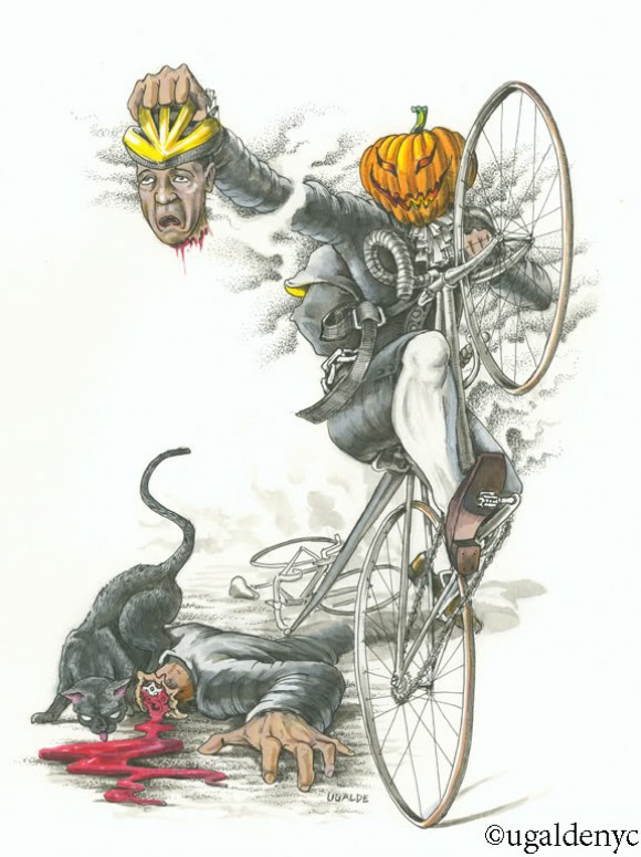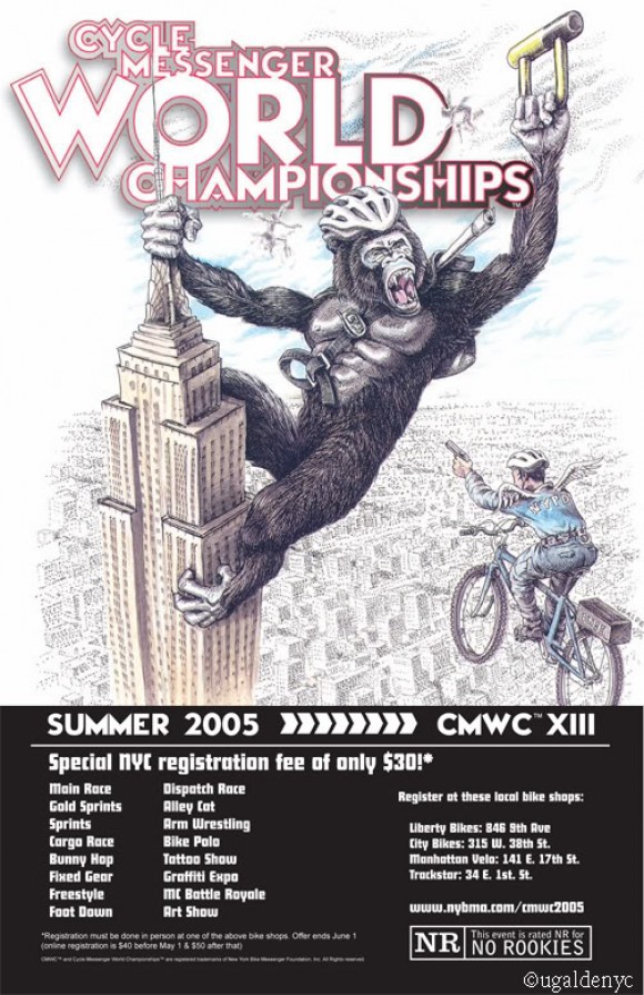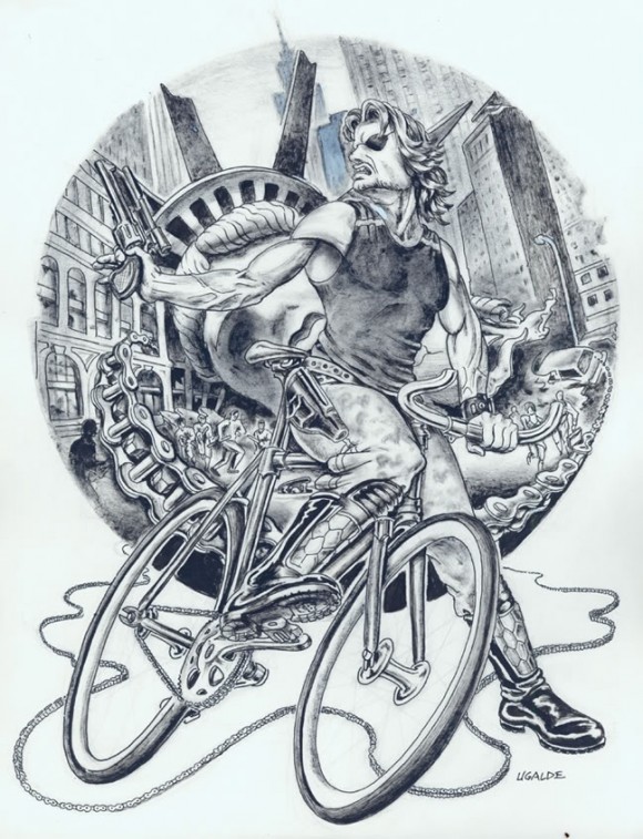 Ну и на ваше обозрение еще немного арта уже от Greg Ulgalde, который является почти легендой в Нью-Йорке. Его рисунки часто украшают баннеры и спицевые карточки. Сейчас он работает над серией рисунков для шутливой велогонки "Escape From New York", которая пройдет 3го июля.