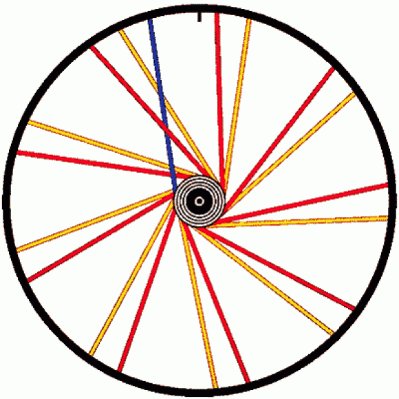 Кросс-Лэйсинг — очень интересная схема, заметно повышающая прочность колеса. Суть схемы в том, что одна спица проходит через 4 (а не 2, как в обычной):