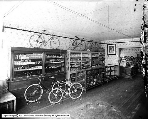 Этот магазин находился уже в Солт-Лейк Сити, США. Кстати, Guthrie Bicycle Shop (а именно он перед вами) еще в строю и работает! Правда по другому адресу. Интерьер магазинчика достаточно скромен, что не было удивительным для начала 20-го века.