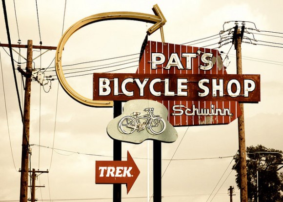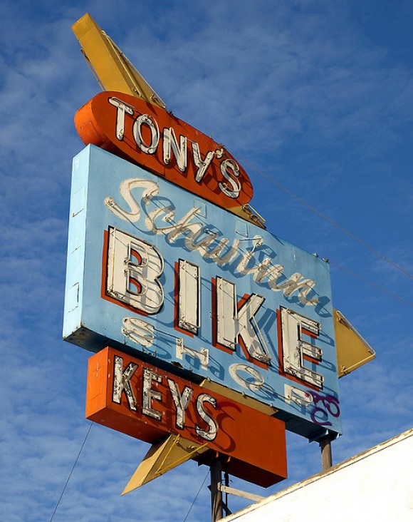 Хочу, разнообразия ради, выложить немного фотографий ретро веломагазинов, некоторые очень интересные, особенно вывески, лично я люблю такие). Одна из них перед вами (вверху), это Tony's Schwinn Bike Shop, в LA (Лос Анджелес), открытый еще в 1946 году, что делает его вторым по старшинству веломагазинов во всей Южной Калифорнии.