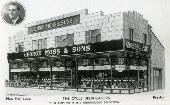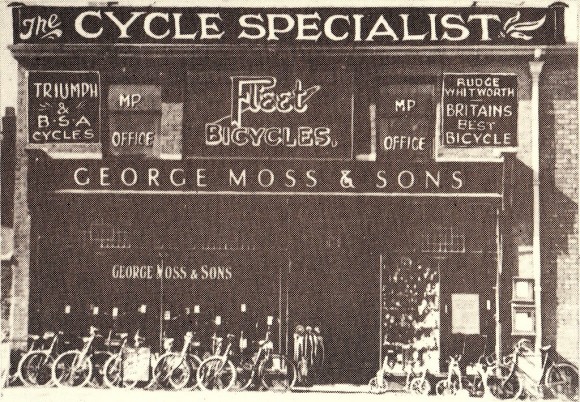 Целый "супермаркет" велосипедов George Moss Bicycle Shop, по адресу New Hall Lane, Preston, 1935 год. Всего в этом городе, в то время, насчитывалось около 47 веломагазинов, большинство из которых закрылось в 1980-х годах. Следует заметить, что это был не единственный магазин компании George Moss& Sons в том же городе Preston. Вот еще некоторые из них: