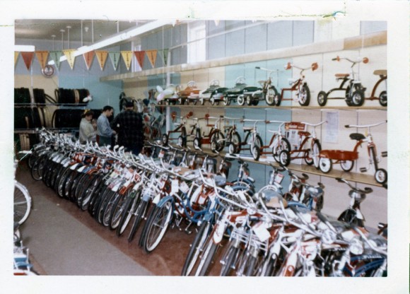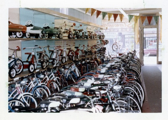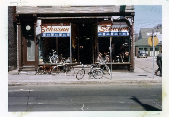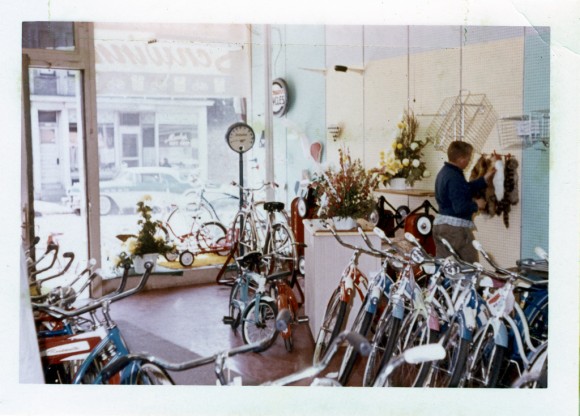 Магазинчик Ben's Cycle 50-х годов. Вывеска Schwinn в те годы делала свое дело и помогала привлекать покупателей.