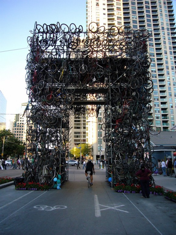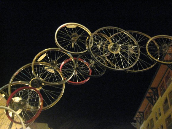 Скульптура-ворота из велосипедных колес в Сан Рафаэль