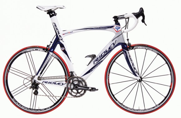 Описание: велосипед той самой Катюши! Российской команды, выступающей на самом высоком уровне велогонок. По заявлению велопроизводителя Ridley — это самый быстрый велосипед. Вес рамы составляет 900 грамм. Именно на этом велосипеда Иванов стал чемпионом России.